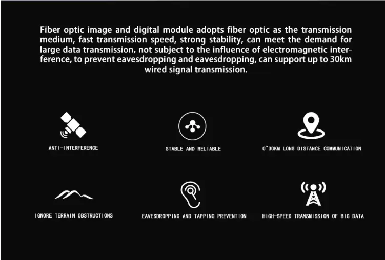 이 전문 UAV 통합 광 전송 시스템(광섬유 스풀 포함)은 3km~40km의 유연한 통신 범위를 지원합니다. 높은 신뢰성과 컴팩트한 디자인을 특징으로 하는 이 시스템은 중거리/단거리 운용 시 안정적인 데이터 전송을 보장하며, 산업 임무에 요구되는 엄격한 간섭 방지 및 대역폭 요건을 충족합니다.
